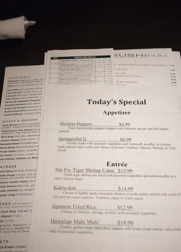 Sushi Hai is a trendy sushi bar and Japanese noodle restaurant located in Denver, CO. The menu features a variety of options, including vegan and vegetarian choices. With offerings like Calamari with spicy masago ponzu sauce and Gyoza pork and vegetable dumplings, Sushi Hai provides a diverse array of appetizers to start your meal. The Sushi Appetizer section offers unique dishes like Fiery Ginger Sashimi and Hama Kama. For soup and salad lovers, the Pork Ramen and Hai Caesar Salad are must-try options. The restaurant also provides a range of amenities such as outdoor seating, Happy Hour specials, and free Wi-Fi. Overall, Sushi Hai offers a contemporary dining experience with flavorful dishes that cater to various dietary preferences.
